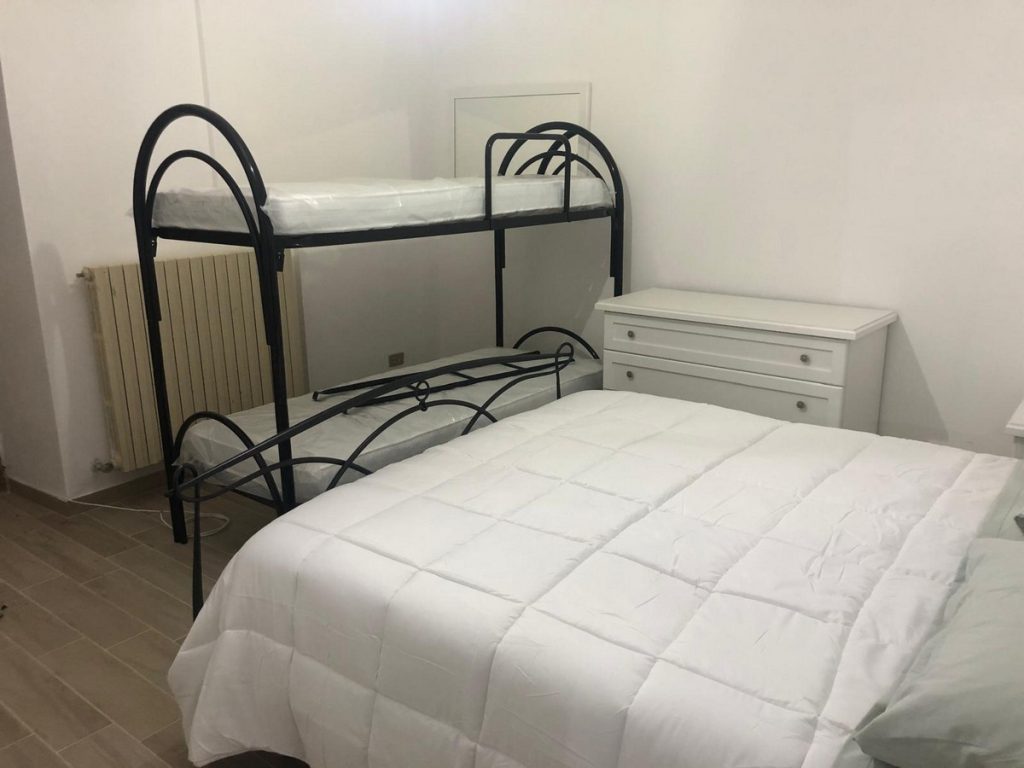 First floor – 2 bedrooms, spacious bathroom. From the bedrooms, a balcony and a large terrace to be paved, with a beautiful panoramic view of the valley and the Majella Mountain.