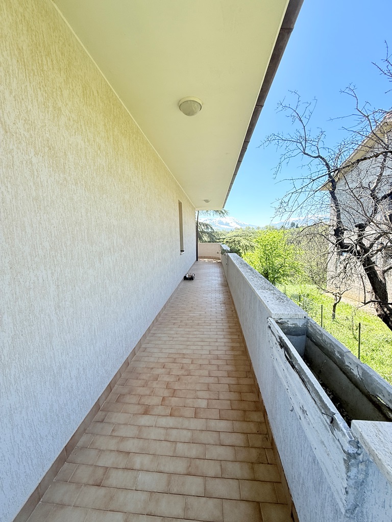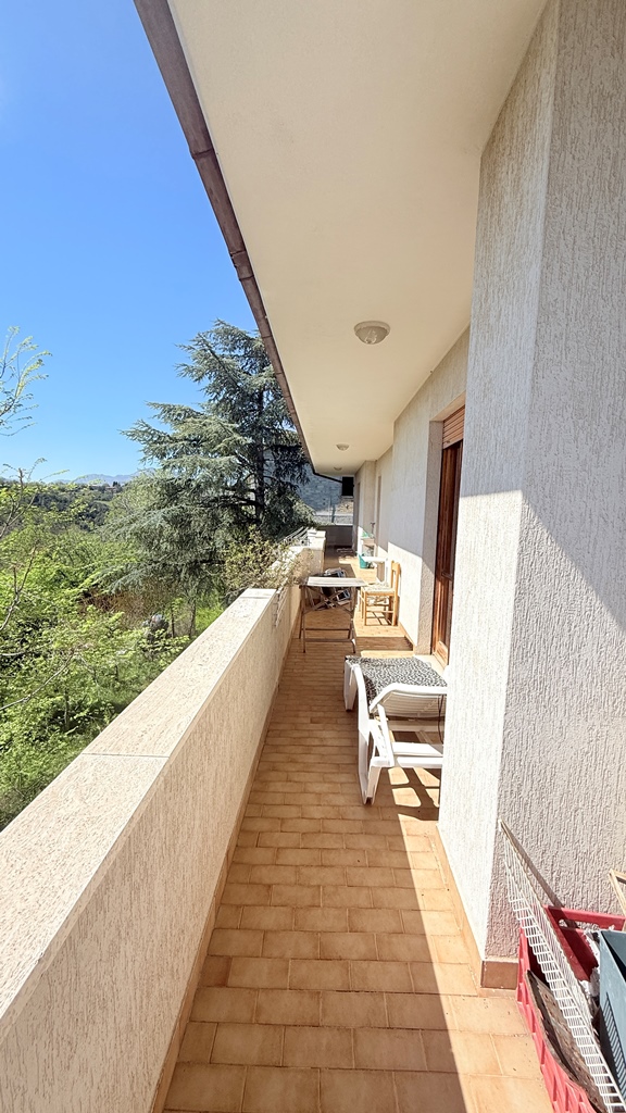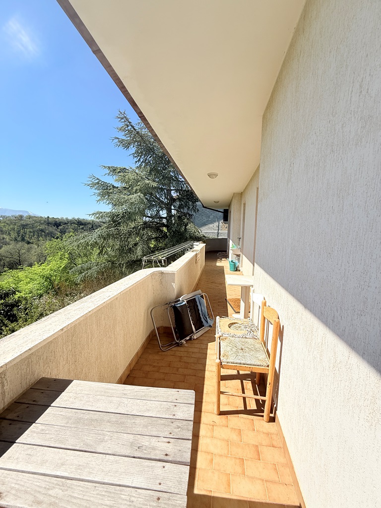 Accessible via an internal staircase, this level offers a spacious kitchen with fireplace connected to the living room, tree bedrooms, a study, and two bathrooms. A wraparound balcony surrounds the entire floor, enhancing light and views toward the mountains.